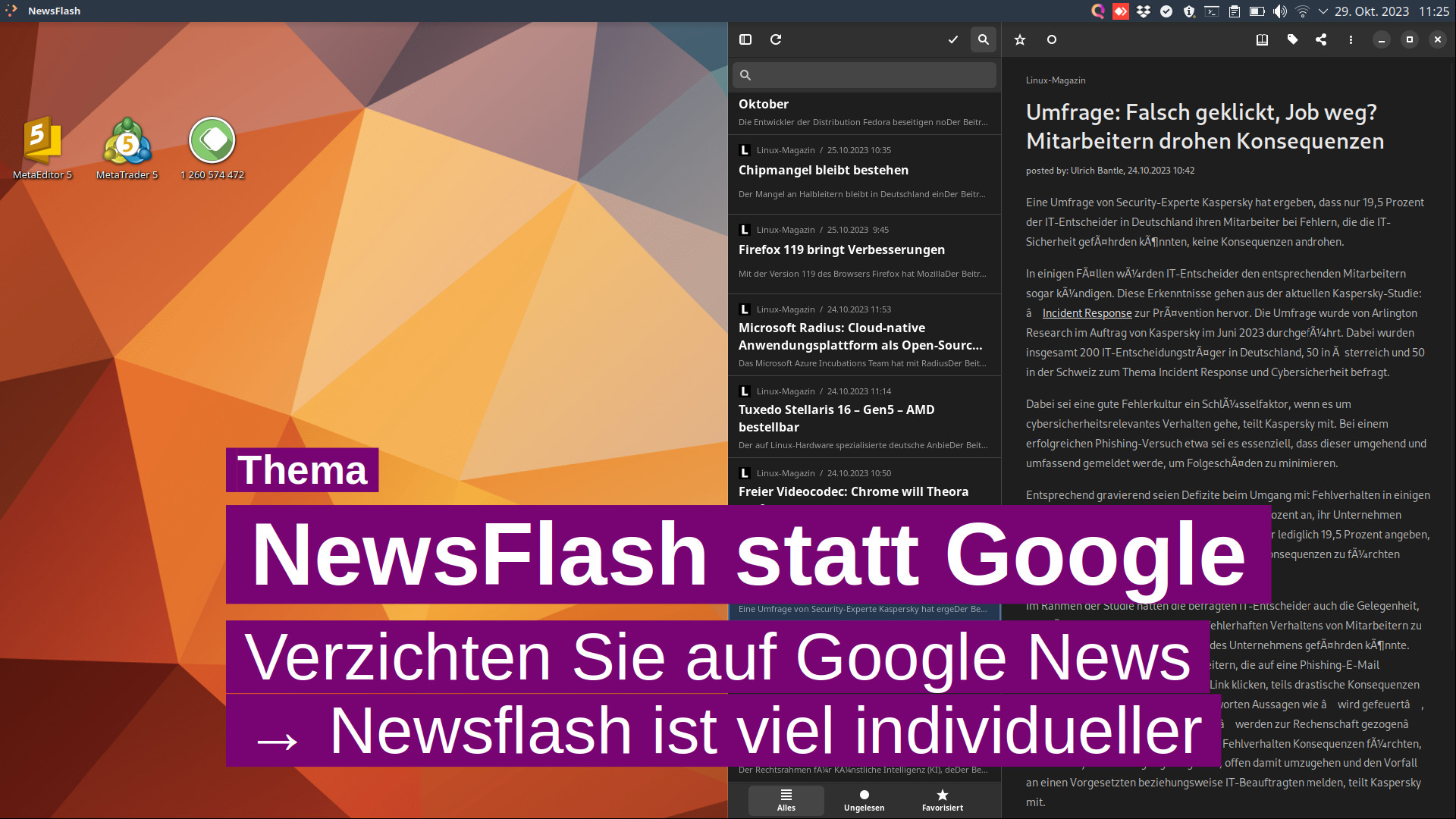 Verzichten Sie auf Google News, denn Newsflash ist viel individueller. Passen Sie Ihren Newsflow Ihren individuellen Interessen an. Sortieren, automatisch aktualisieren und unbegrenzt informieren. So sind Sie Ihren Kollegen immer einen Schritt voraus. Informationen, die Sie auf den Punkt brauchen.