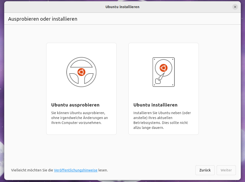 Ubuntu neuer Desktop installer