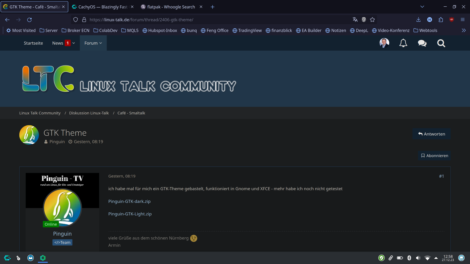 Das Forum sieht mit dem CachyOS Webbrowser anders aus. Themes werden schöner dargestellt.
