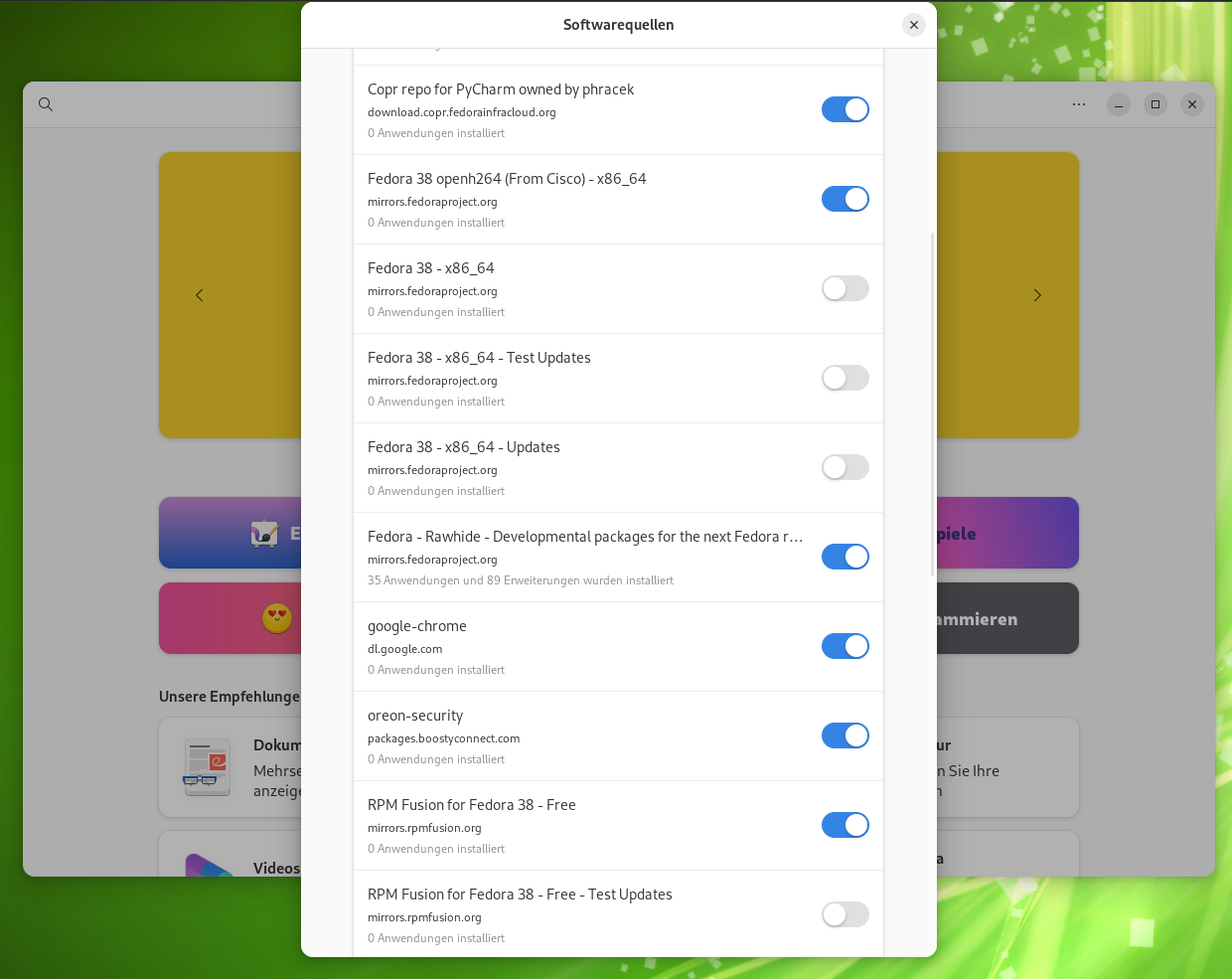wobei Fedora 38 ist nicht ganz richtig, ist ein Mix aus 38 und Rawhide (der testingversion von Fedora)