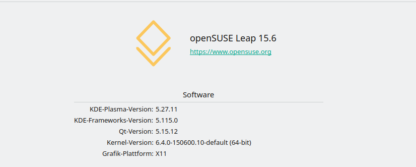 Dafür das Leap 15.6 erst im Juni erscheinen soll läuft die Beta schon echt geschmeidig. Start mit X 11 und den Plasma Desktop 5.27.11 mit dem Kernel 6.4.0. Habe mir die Version soweit alltagstauglich eingerichtet und läuft.....eine Passagen noch in englisch aber das dürfte bis zu Veröffentlichung im Juni wohl behoben sein.
