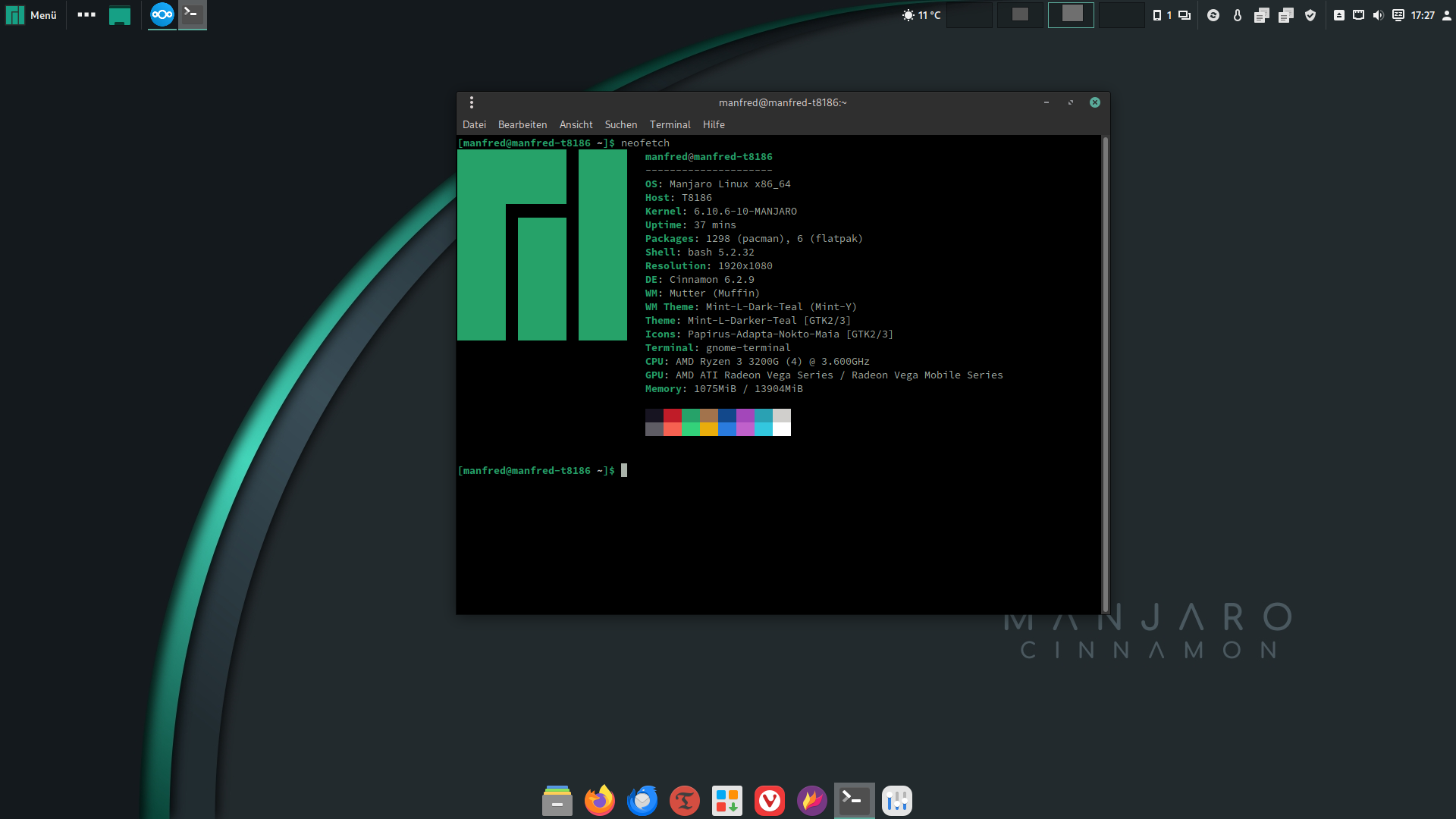 Bis ich Manjaro mit Cinnamon installiert hatte......das hatte mir auf Anhieb gefallen so das ich nix oder nicht viel verändern brauchte. Aussehen/Optik des Desktops vom Start weg hatte mir gefallen.....die Macher von der Manjaro Cinnamon Community haben da ganze Arbeit geleistet.......