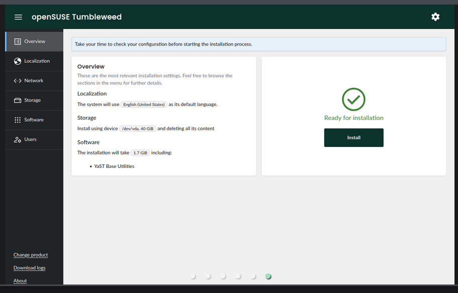 openSUSE kommt mit neuem Installer, mit der schönen Bezeichnung "Agama"........wurde es Zeit dafür ich weiß nicht. Wir hatten letztens noch hier im Forum eine Diskussion das der jetzige gar nicht so schlecht ist. Zwar schon wat älter aber immer noch gut. Zeitpunkt bei Tumbleweed weiß ich jetzt nicht aber so wie es aussieht ist er bei Leap 16.0 schon an Bord......