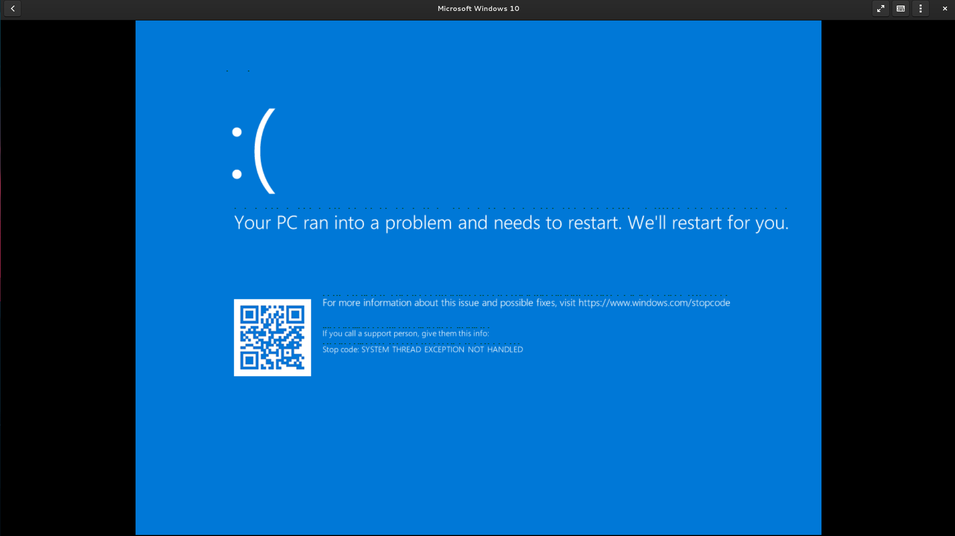 Ich wollte unter GnomeBoxes eine VM mit Win 10 installieren. Es endet immer in einem Bluescreen.