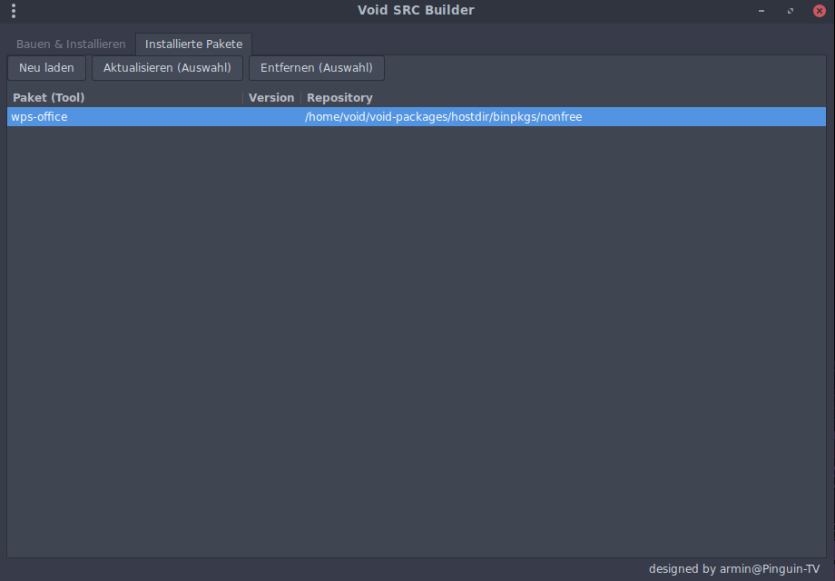 hier sind dann alle gebauten und installierten Pakete vorhanden, können aktuallisiert und auch gelöscht werden!