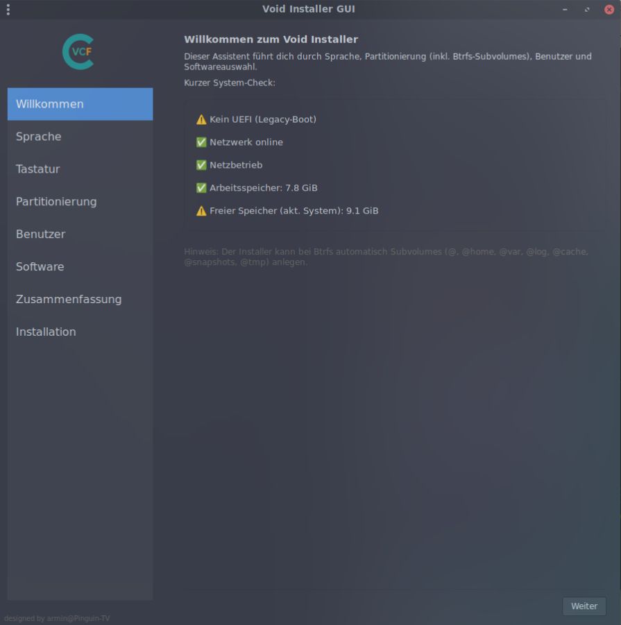 nur mal wieder ein kurzes Lebenszeichen von mir, mein Installer macht langsam Fortschritte,