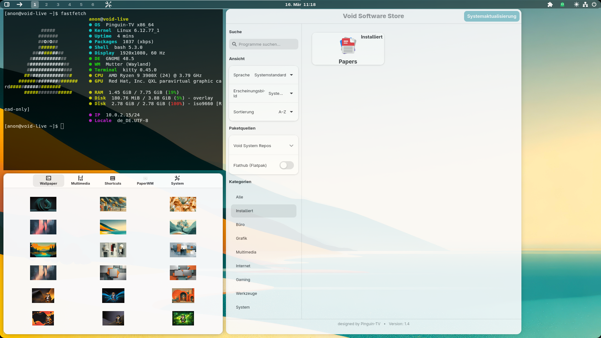 Hier ein paar Bilder - ich verwende die Gnome-Shell - also einen abgespeckten Gnome Desktop: