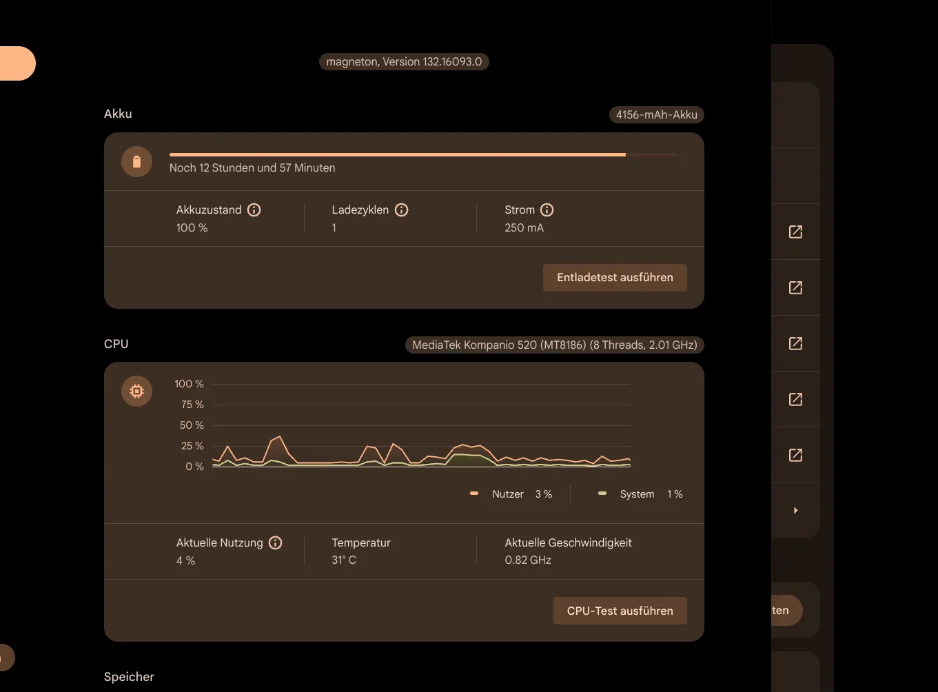 Das Chrombook ist erstaunlich flott, das hatte ich auch erwartet, weil 8 Kerne natürlich schon auf dem Papier gut klingen. Zum Look and Feel, hat es sich dramatisch verbessert, man kann Scanner, Drucker verwenden, man kann Hintergründe, Aktionaleiste, Mauszeiger, etc so einstellen wie man es gerne hat, was ausser Dunkelmodus mei den alten Chrombooks nicht ging. Der Softwarestore ist riesig gewachsen, Apps wie Only Office , Tuxracing liessen sich, wie unter Linux gewöhnt, einfach Grafisch aus dem Softwarestore installieren mit einem Klick. Hoch oder Runter fahren geht in einem Augenzwinkern.