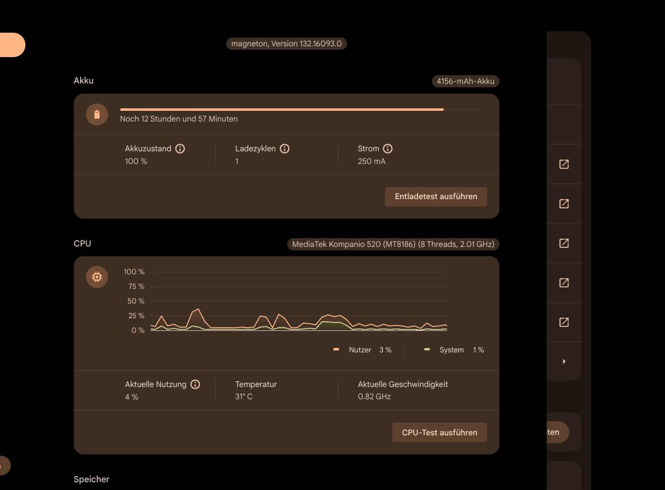 Der Arm Prozessor fühlt sich genial an, wie bei den meisten Chrombooks, braucht man keine Lüfter, bei ca. 6 W Leistungsaufnahme natürlich auch nicht nötig , aber sehr angenehm. Ich bin gespannt wie weitere Verwendung und rumtesten so klappen. So muss ich sagen ich habe mich sofort wieder in Chrom OS verliebt, ich glaube für Leute die nur ein wenig Daddeln und Office und Surfen wollen, eine Ideallösung mit 10 + Stunden an Akkulaufzeit. Von Leer bis voll war der Akku übrigens in knapp unter einer Stunde. Auch für Kids und Senioren absolut super weil Intuitiv und man kann ja nichts kaputt machen, wenn mal was schief geht. Powerwash und neu starten, weiter gehts.