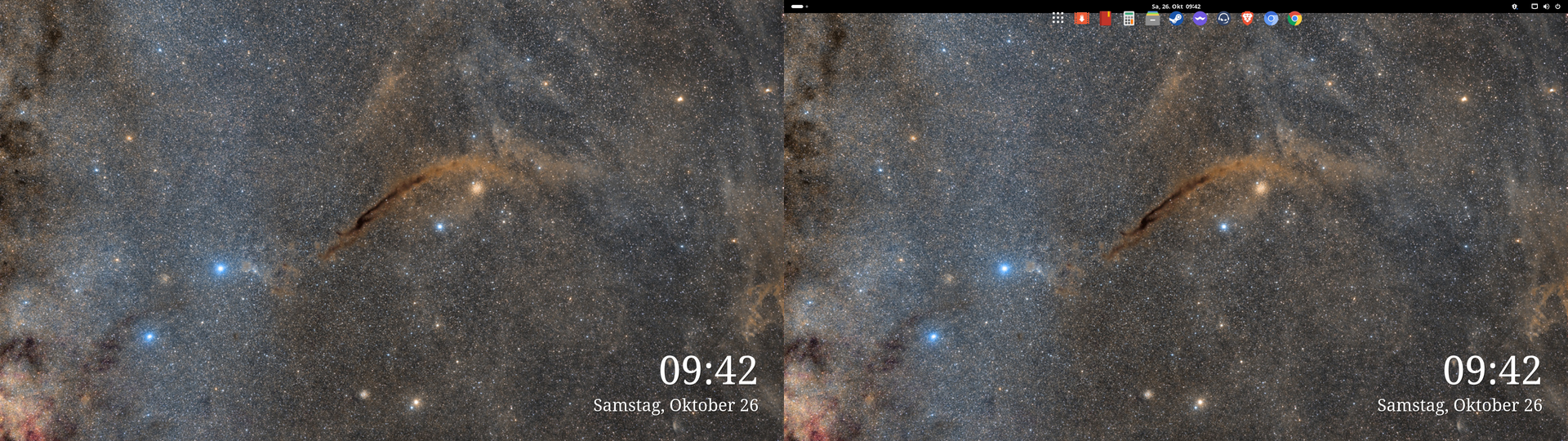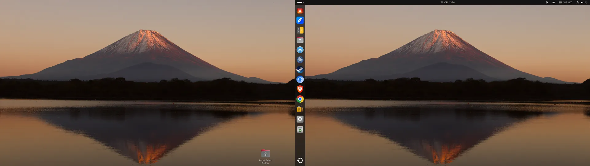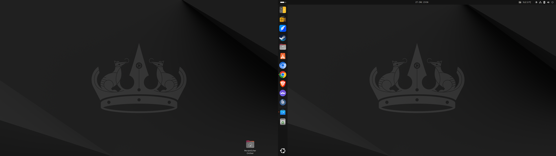 wie man den Mist abstellt, würde mich freuen. Ferdium lies sich auch nicht Installieren. Allerdings sind Telegram und Whatsapp eh schon als WEB-App vorinstalliert also nicht so schlimm. Es ist sehr schick und schnell, mal sehen wie lange es ohne Probleme läuft. Ach ja und an die KDE Pros?? Wieso habe ich eine kurze Leiste mit Programmen am Zweitbildschirm und die Kurze Leiste am PrimärBildschirm und wie kann man Rechts oben den System Dialog Verändern das man Ihn besser lesen kann. Allerdings trau ich mich nicht an KDE Leisten veränderungsDingens, dannach war mal mein ganzen Desktop Weg, dann liebe so
