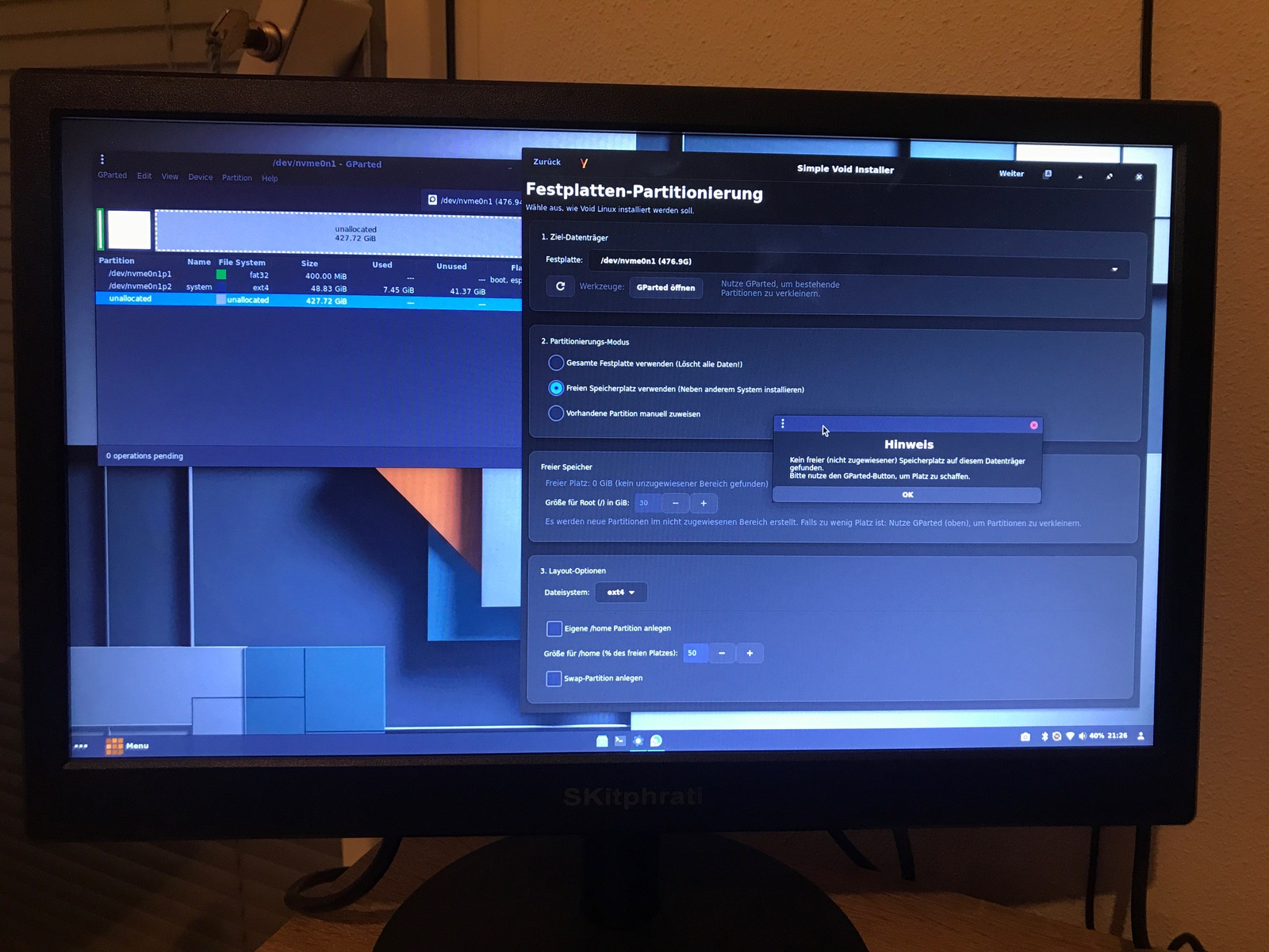 Ich habe Voidlinux auf der 1. Systempartition installiert.