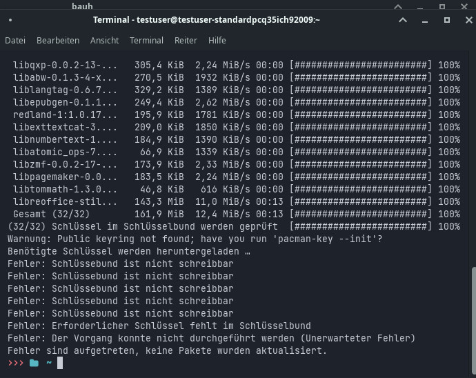 Es funktionierte auch kein AUR. Grundsätzlich kamen immer Fehlerfeldungen.