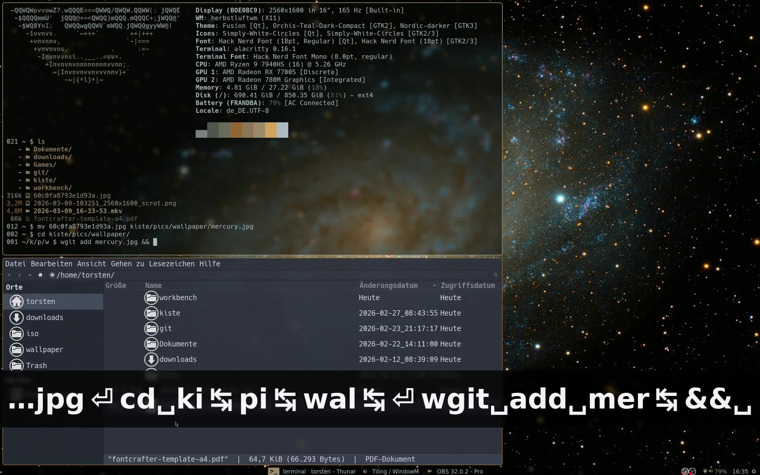 was mir gerad noch einfiel, ein schönes video, was man alles mit tiling window managern machen kann bzw. in dem fall mit herbstluftwm hatte damals Jan Lunge: