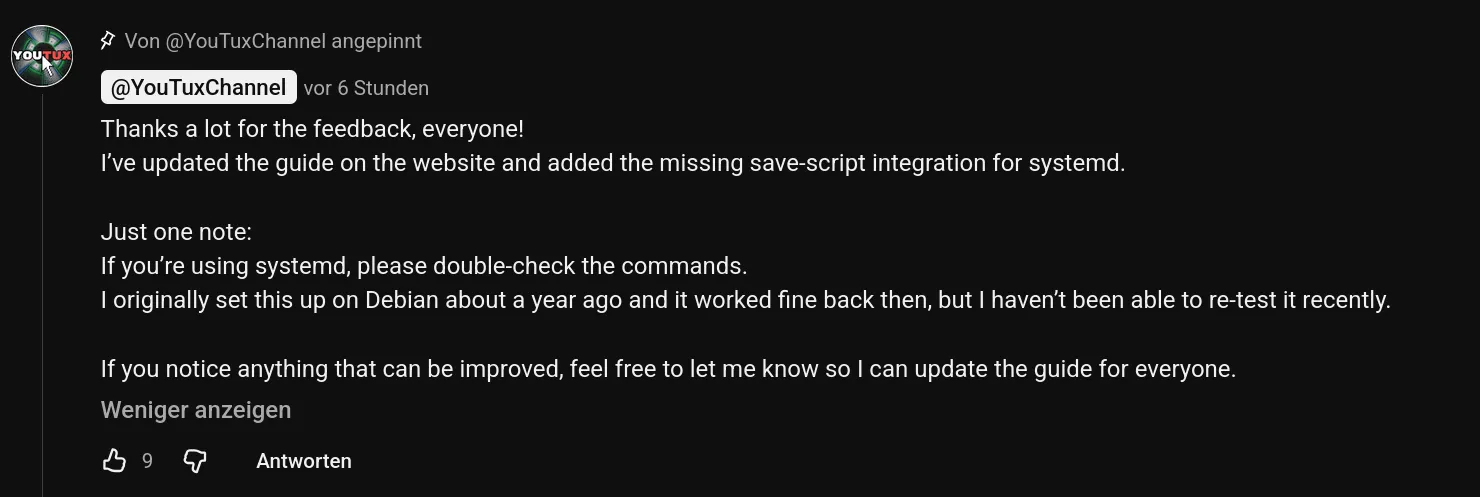 ich wünschte mir, die ganzen "verbesserten" distros würden sich basis-distro-kategorisiert zusammenschließen und die ganzen kleineren tatsächlichen verbesserungen und helfershelfer zusammenwerfen, da könnten synergie effekte schlummern, also z.b. manjaro, garuda, cachy, die machen alle mehr oder weniger dasselbe, oder auch mint, pop oder zorin, da sind überalle kleine tools drin, die ganz schick sind, aber was bei dem einen dabei ist, fehlt beim nächsten und umgekehrt