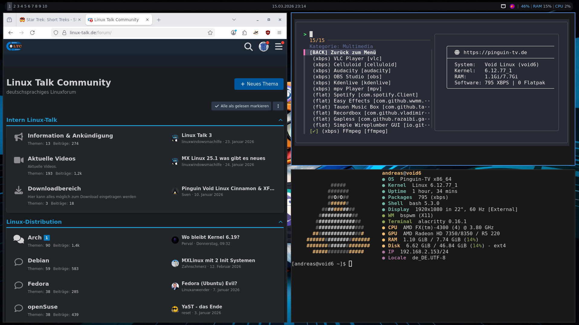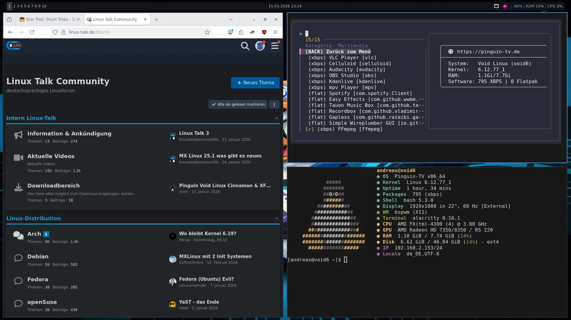 Lieber Armin - deine Distro gefällt mir sehr - cool gemacht mit runden Ecken / transparentem Menü, dein TUI-Software u.v.a.m
