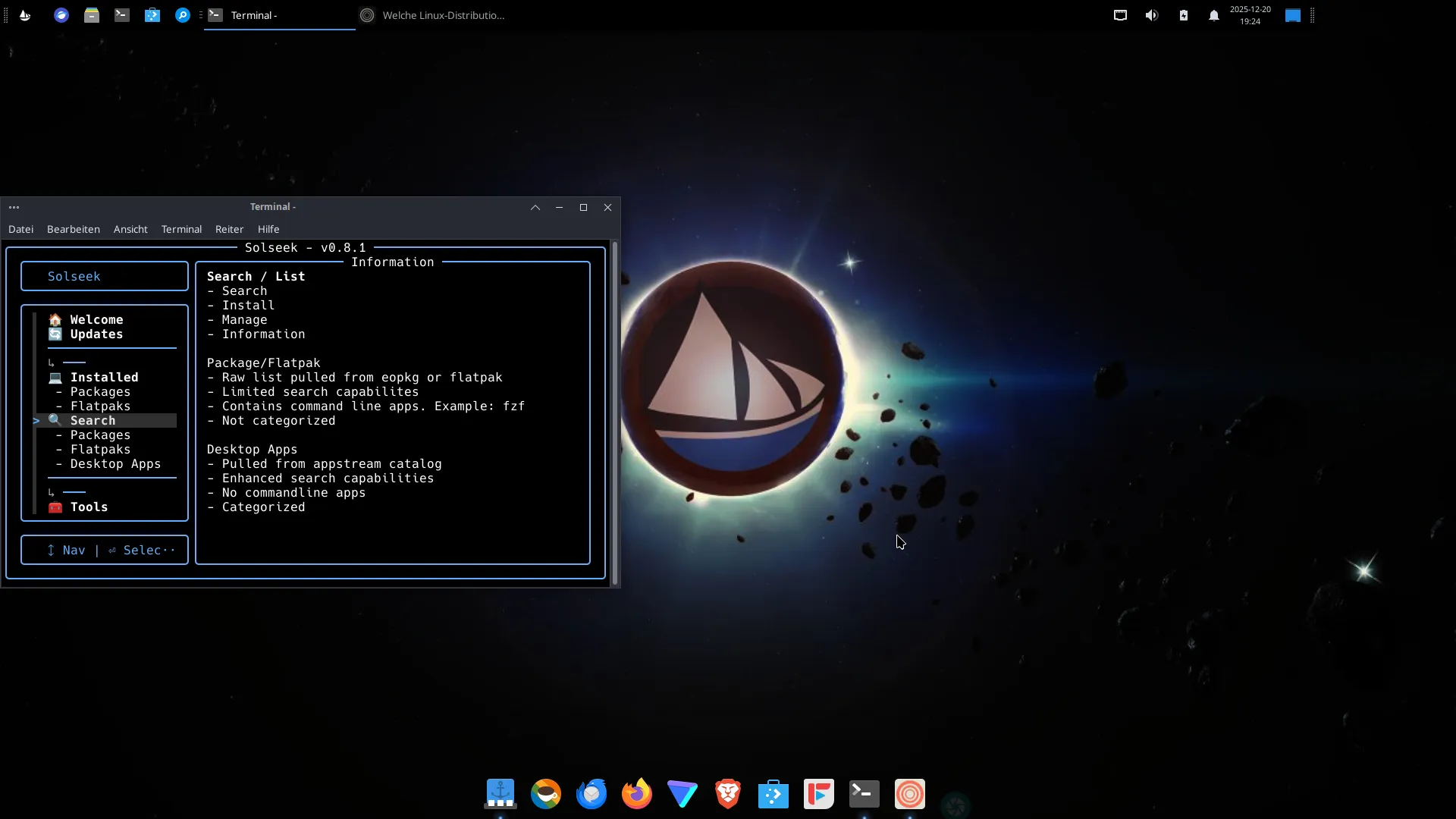 Solus, was ich im Video nicht gezeigt habe, die entwickeln gerade ein TUI-Softwarestore