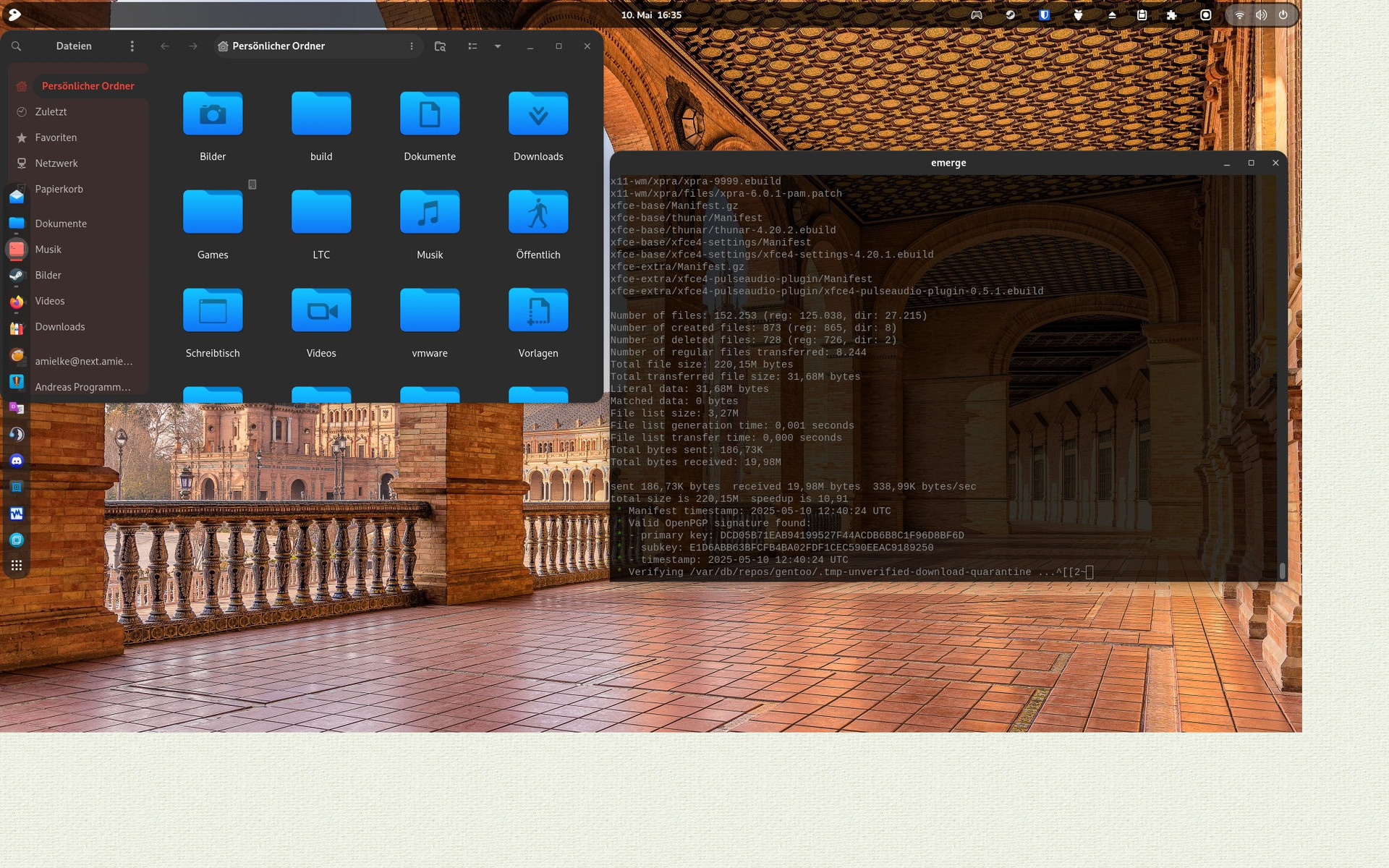 Jetzt bin ich im Testing Zweig bei Gentoo.