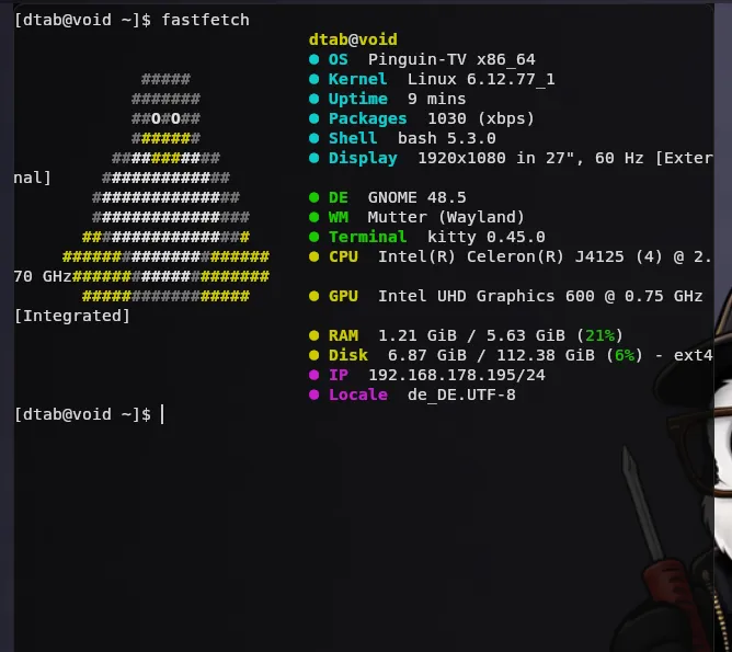 Alpine Linux mit Gnome verhält sich wie viel andere Distro's. Aber wer Nvidia-Treiber benutzen möchte, wird keine finden außer Nouveau Treiber. Im vergleich zu Void-Linux muss man doch viel mehr konfigurieren . Ja der Paketmanger ist sau schnell.
