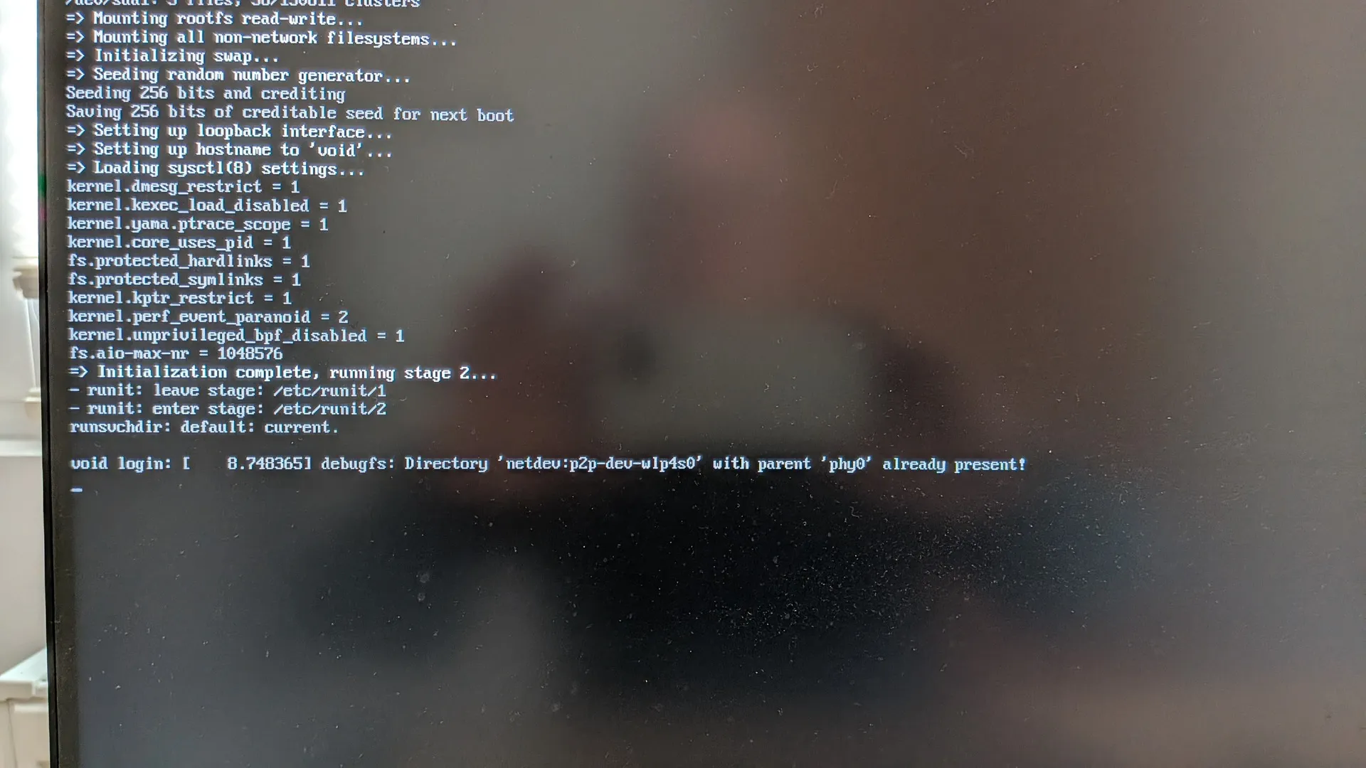 Habe dann Void-installer benutzt, und die Installation lief durch. Nach dem Neustart war der GDM nicht gestartet. Ich musste den GDM manuell per "sv up " starten. Dann kam der Anmeldebildschirm. So das war schon mal geschaft. Die Tastenbelegung funktioniert . Aber ich hatte keinen Ton. Nachdem ich den fehlenden Pulseaudio installiert habe, hatte ich Ton. Drucker wurde selbstätigt erkannt (Netzwerkdrucker). Ich bin Octoxbps gewöhnt, ich konnte die Pfeiltasten nicht benutzen. Muss man wohl die Maus bemühen.