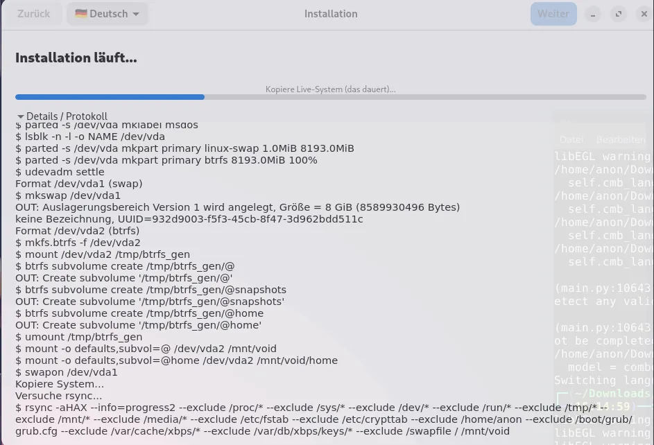 jetzt fehlt noch viel testen........ mit ext4 auf einer leeren festplatte in einer VM funktioniert - Dualboot, BTRFS usw. fehlt noch, also das wird noch dauern