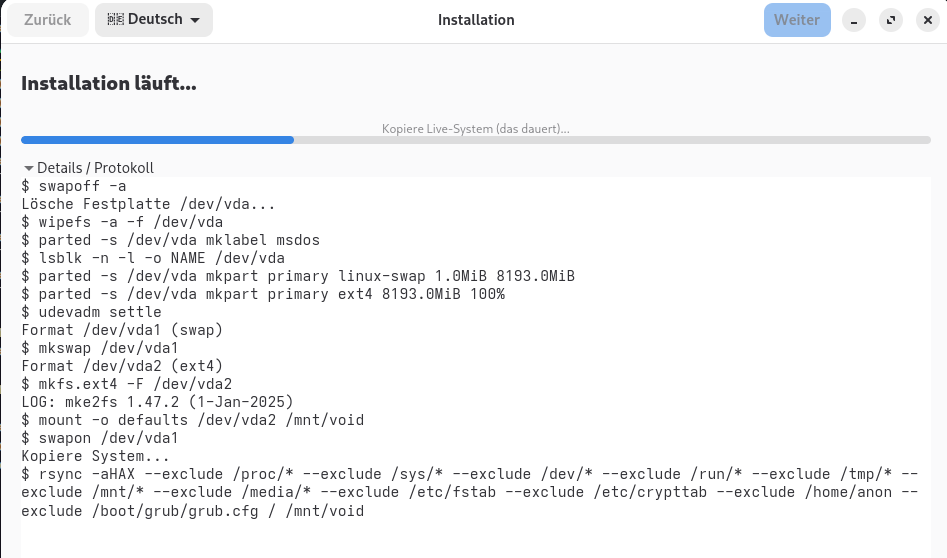 in meiner Live-ISO sind schon alle Abhängigkeiten vorhanden! da musst du nicht extra installieren das der Installer läuft.