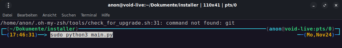 in der Live-ISO dann starten mit: sudo python3 main.py