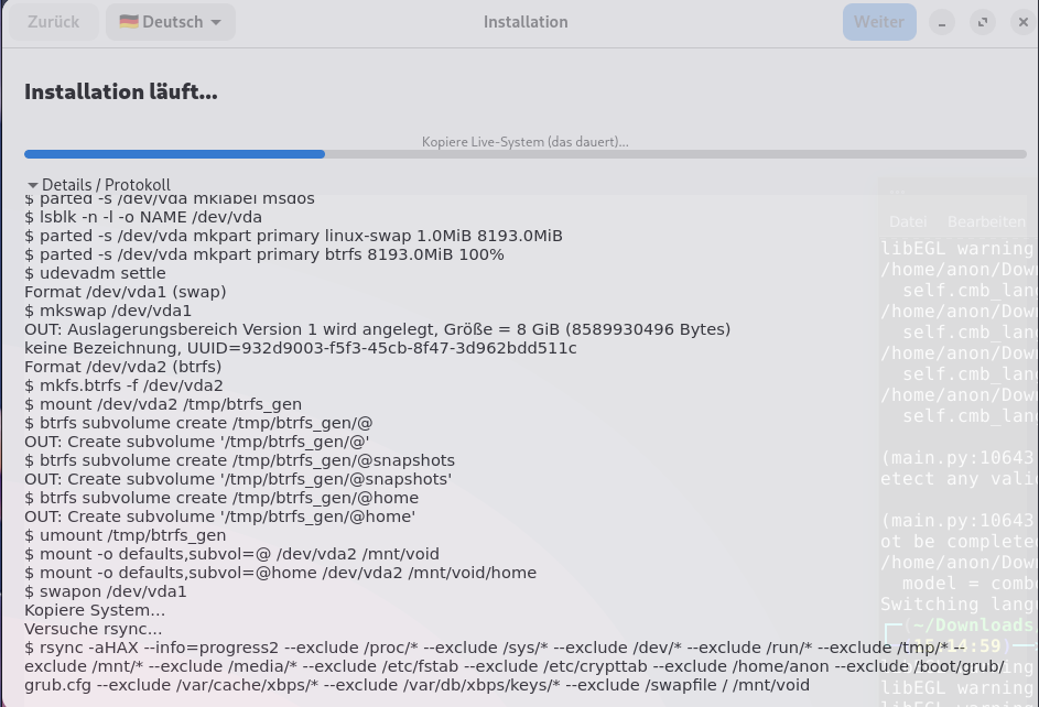 jetzt fehlt noch viel testen........ mit ext4 auf einer leeren festplatte in einer VM funktioniert - Dualboot, BTRFS usw. fehlt noch, also das wird noch dauern