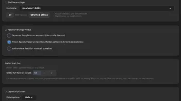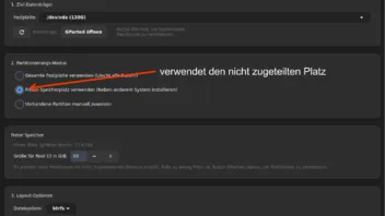 das ist leider noch so und ich bekomme es (noch) nicht hin - habe mir jetzt überlegt ob ich nicht die komplette Partitionierung von Gparted überlasse und nur den 1. und 3. Punkt im Installer lasse, also entweder die komplette Festplatte oder dann eben die angelegte Partition auswählen