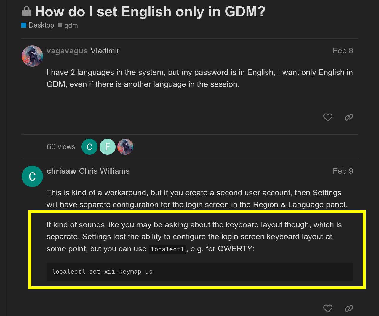 Hallo! Das klingt nach einem kleinen Konfigurationsproblem. Bei Void Linux mit Gnome kannst du die Tastaturbelegung für den Anmeldebildschirm (GDM) separat einstellen. Hier ist eine freundliche Schritt-für-Schritt-Anleitung, um das Problem zu beheben: