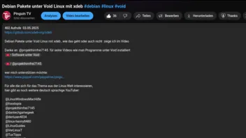 oder vielleicht hab ich eine bessere Idee, du hast ja eine Playlist zu "Software unter Void" da mach ich ein Video dazu und nehme deine Playlist und setze immer einen Link zu der Playlist bei mir