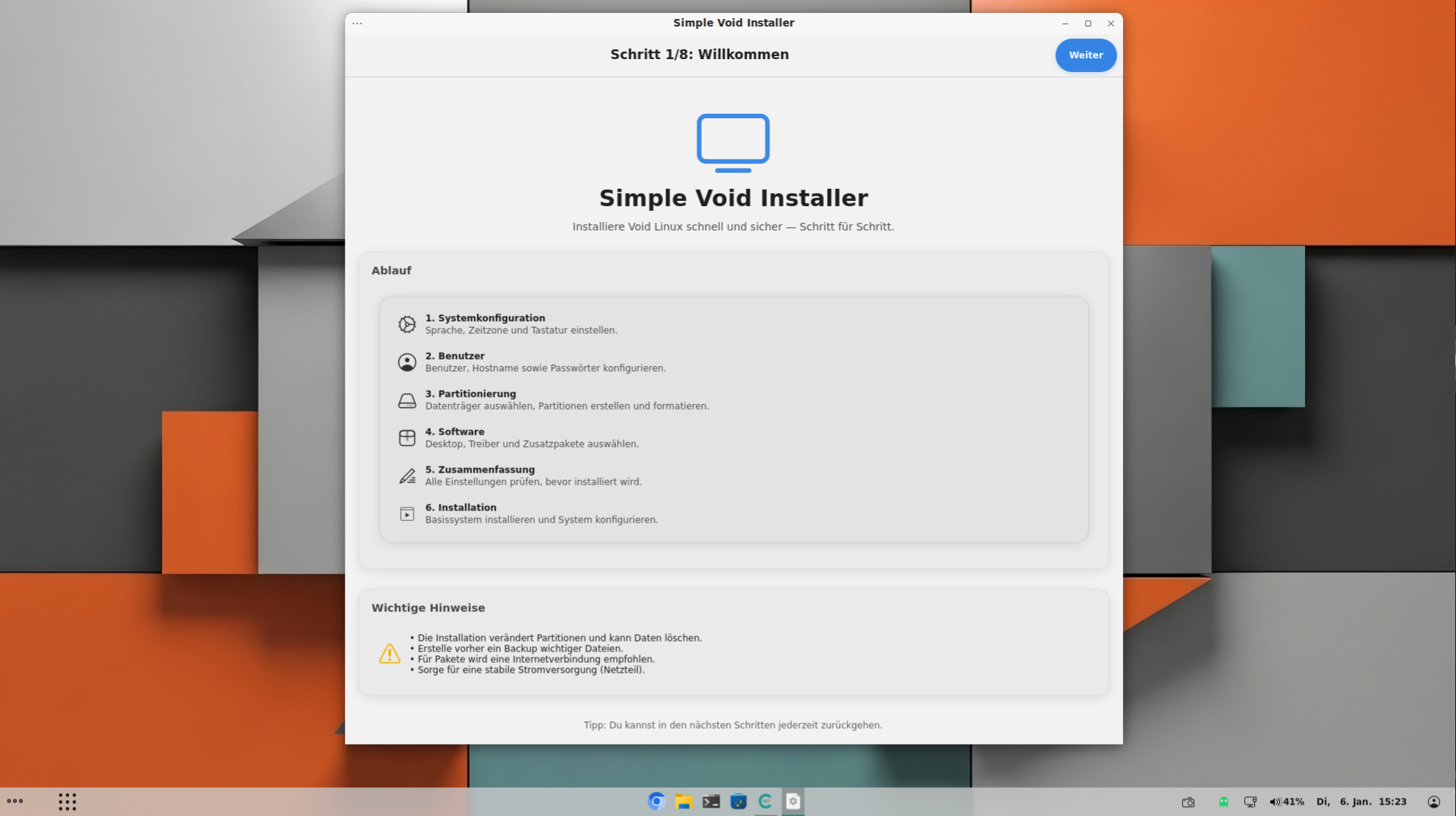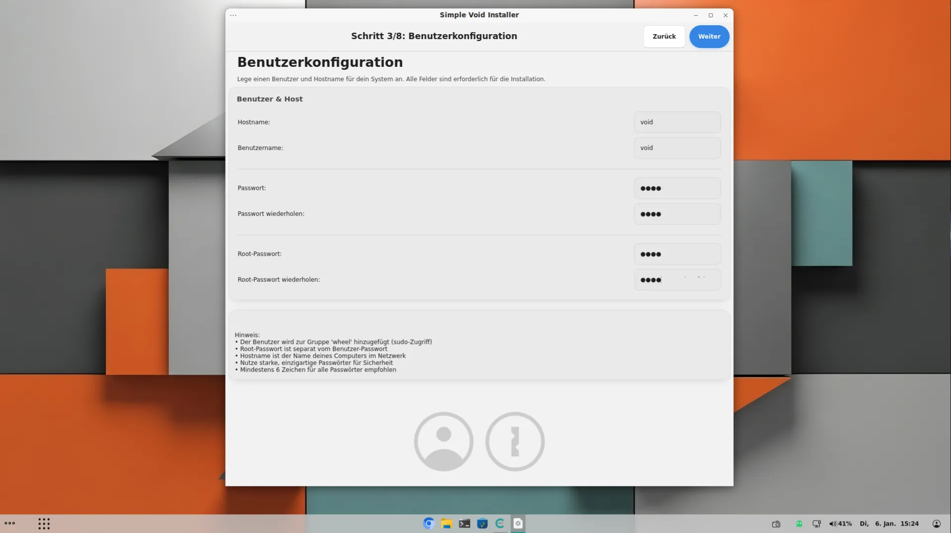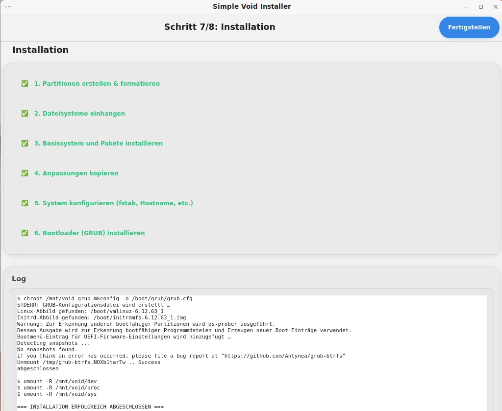 ich hier gerne mit dem angepassten Void-Installer weiter machen, und wer Lust und Zeit hat der kann das gerne einmal probieren,