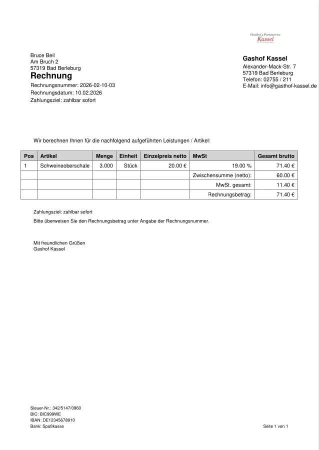 Rechnungsformular