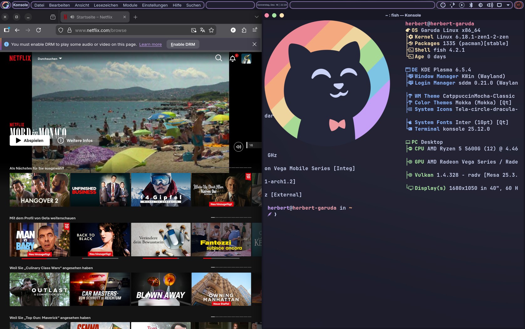 Nachdem ich gestern mit dem Cosmic Desktop mein Linux durcheinander wirbelte, entschloss ich mich, heute auf meinen Wohnzimmer TV PC Garuda zu installieren. Finde den Mokka (lichtschwächstes KDE) sehr ansprechend. Ohne große Kenntnisse über Linux konnte ich dieses System problemlos installieren. Es ist aus meiner Sicht Anwender geeignet.