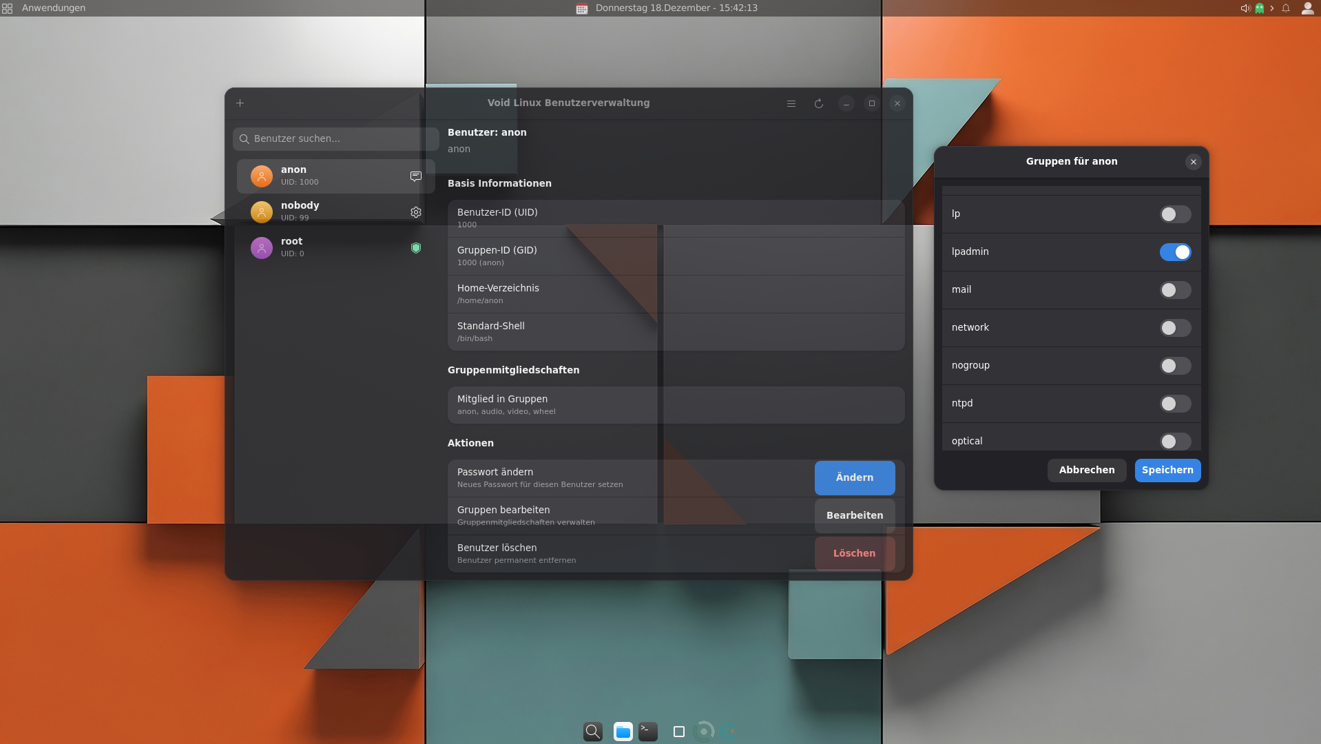 In der Void-Doc stehen zwei Gruppen: