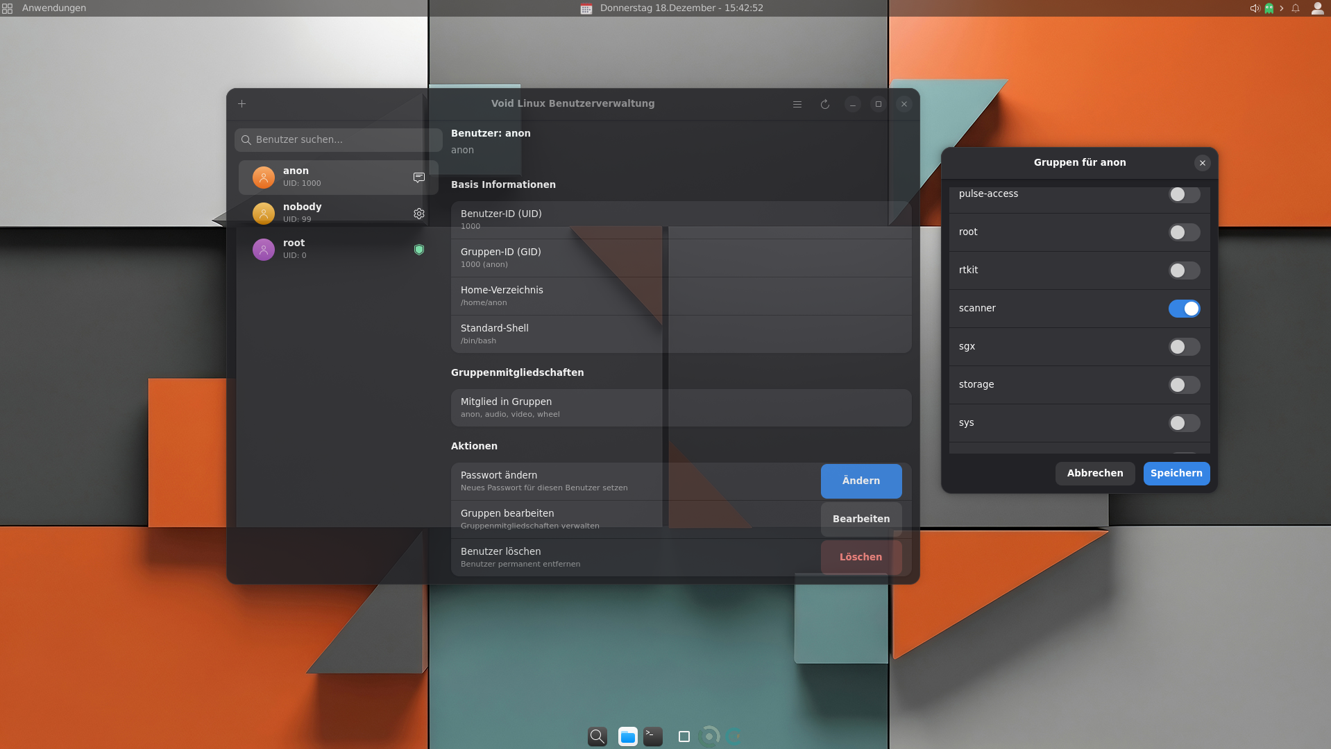 Inzwischen laufen endlich auch Scanner und Drucker unter Void Linux - die Lösung war die Zugehörigkeit meines users zu lpadmin und scanner.